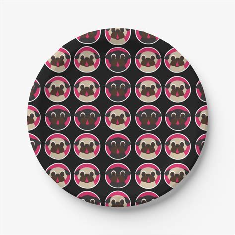 Black And Fawn Pug Heads In Circles Party Plates