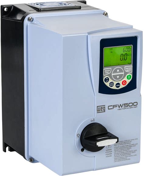 WEG Electric AC High-performance Drive with Disconnect: 460 VAC, 1/2hp with 3-phase input, (VFD), (CFW500A01P6T4DB66DSG2) (PN# 14992148)